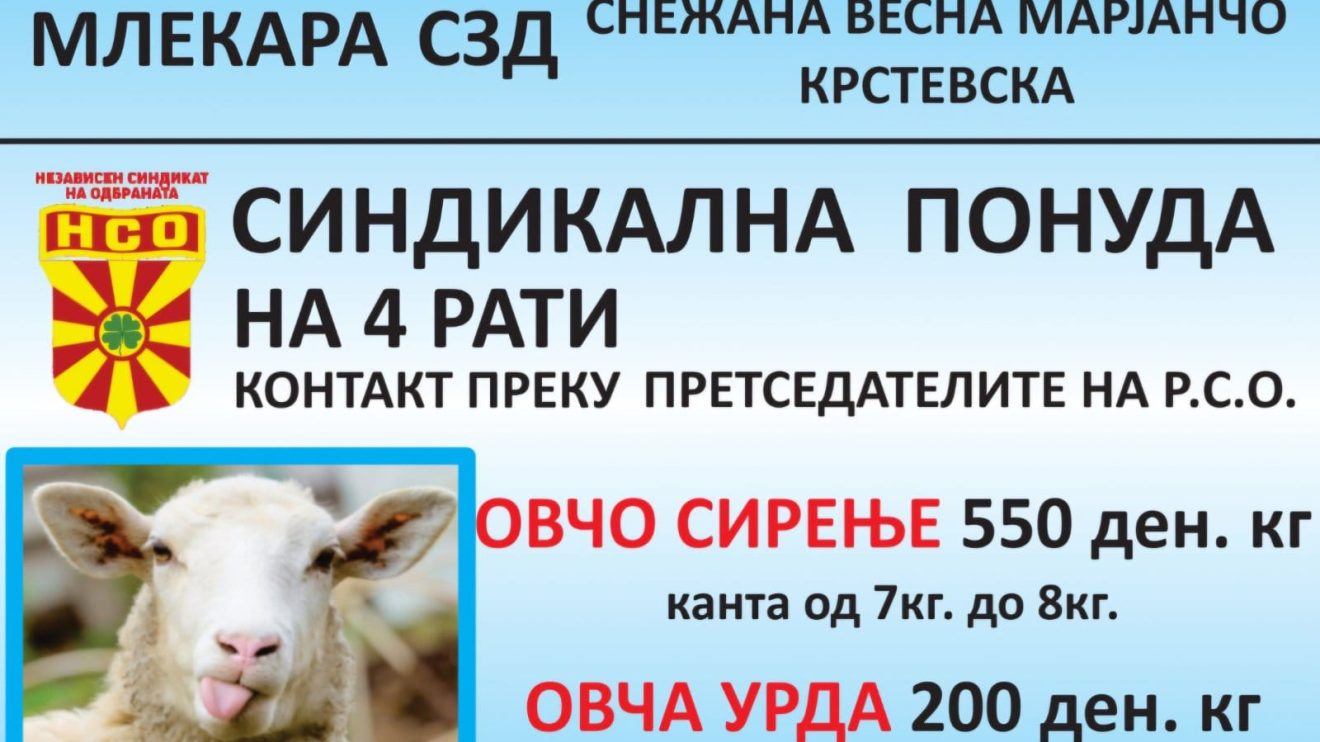Почитувани членови, Со големо задоволство ве информираме дека Независниот синдикат на одбраната официјално воспостави соработка со Млекара СЗД