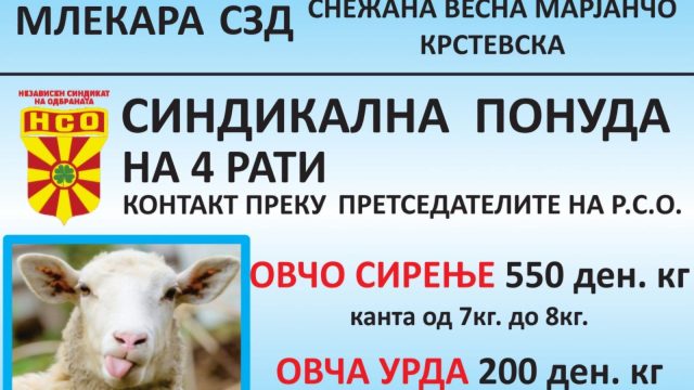 Оревче Агропромет на членовите на НСО им нуди ОВЧО БЕЛО СИРЕЊЕ, 100% Македонски прозвод, произвден од овчо млеко од македонски фармери, без млеко во прав, без додавање...