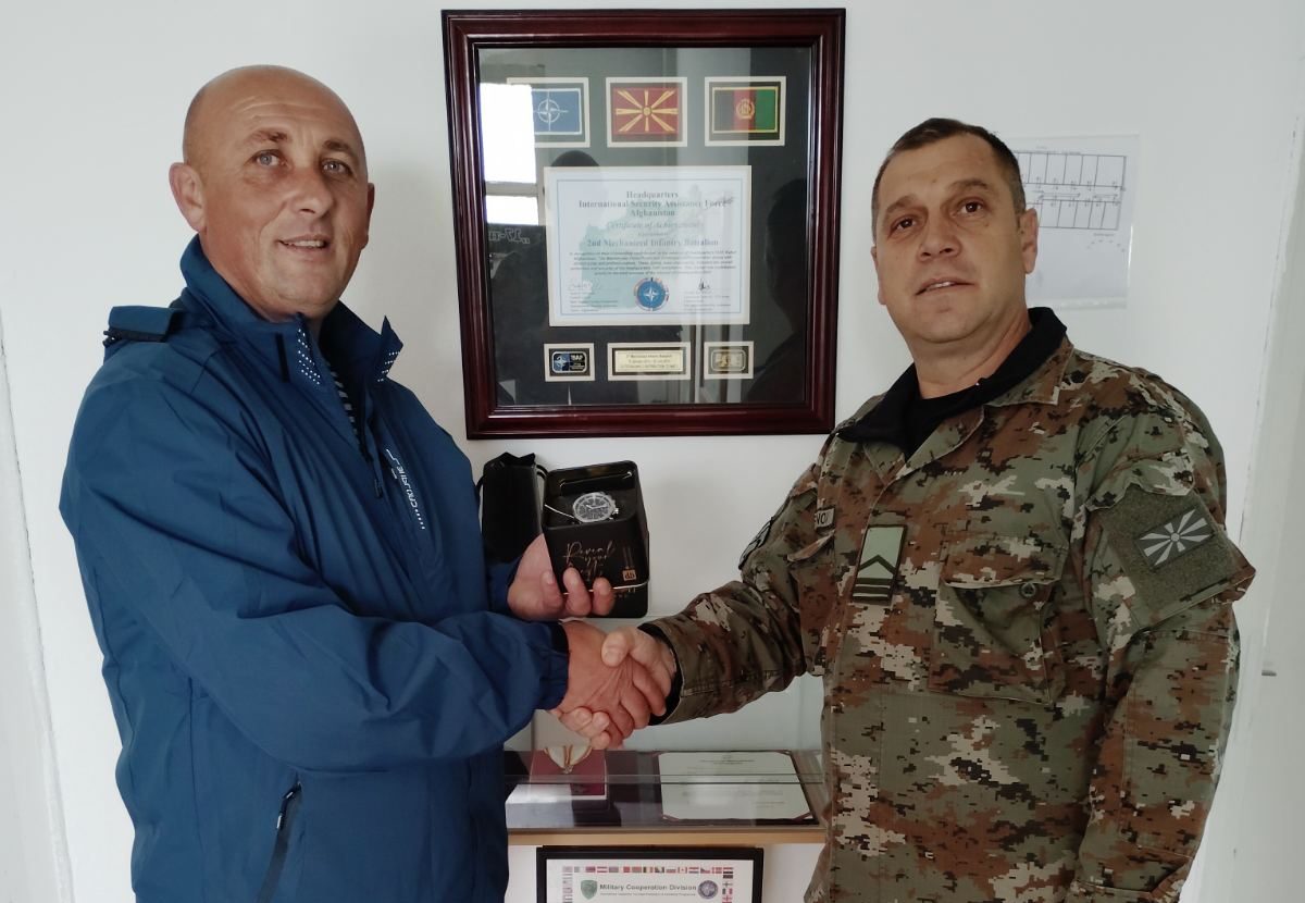 Во касарната Ѓорче Петров од страна на председателот на РСО Ѓорче Петров, Дејан Даниловски беше врачен часовник на нашата долгогодишна членка Бербуче Исени.